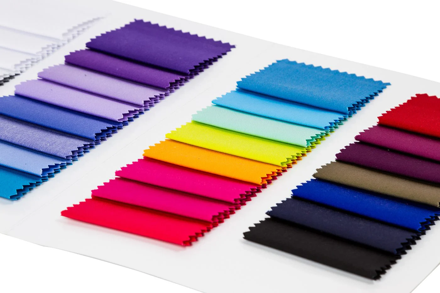 Deze methode is bijzonder populair voor gordijnen en zonwering. Het grote voordeel is de efficiëntie: de klant hoeft niet eindeloos te bladeren om de juiste tint te vinden. Bovendien nodigt de gelaagde opbouw uit tot aanraken; men kan makkelijk langs de randen van de stof wrijven om de kwaliteit te beoordelen. Voor grote uni-collecties is dit de meest compacte en overzichtelijke presentatievorm. Zo toont u alle kleuren gemakkelijk in één overzicht.